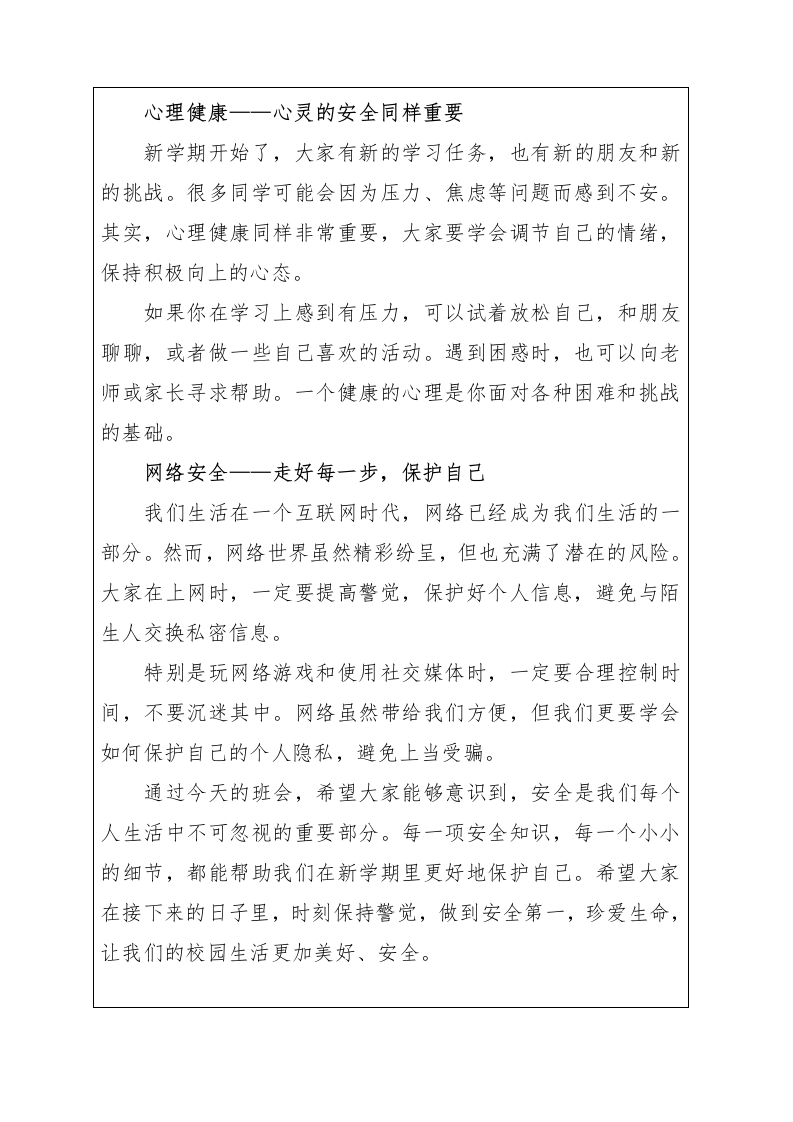 2026年春季安全教育班会记录表(19周):开学安全第一课——启航安全,守护新学期此内容为付费资源,请付费后查看