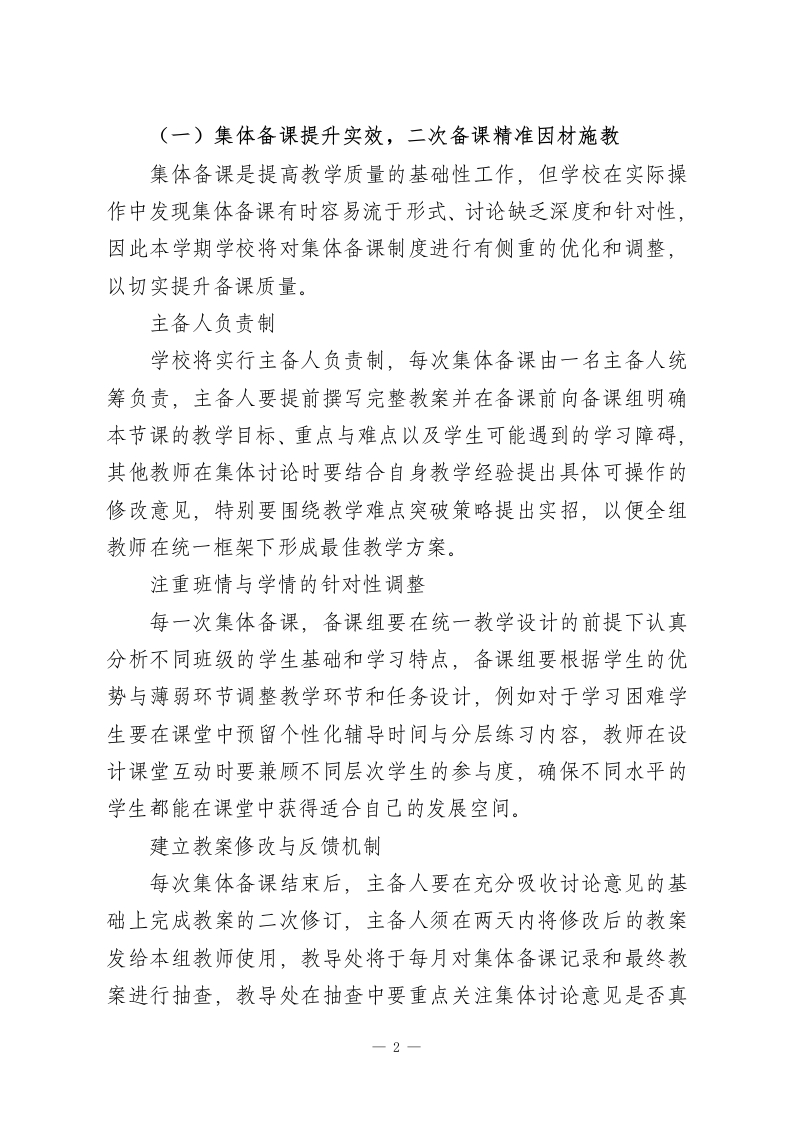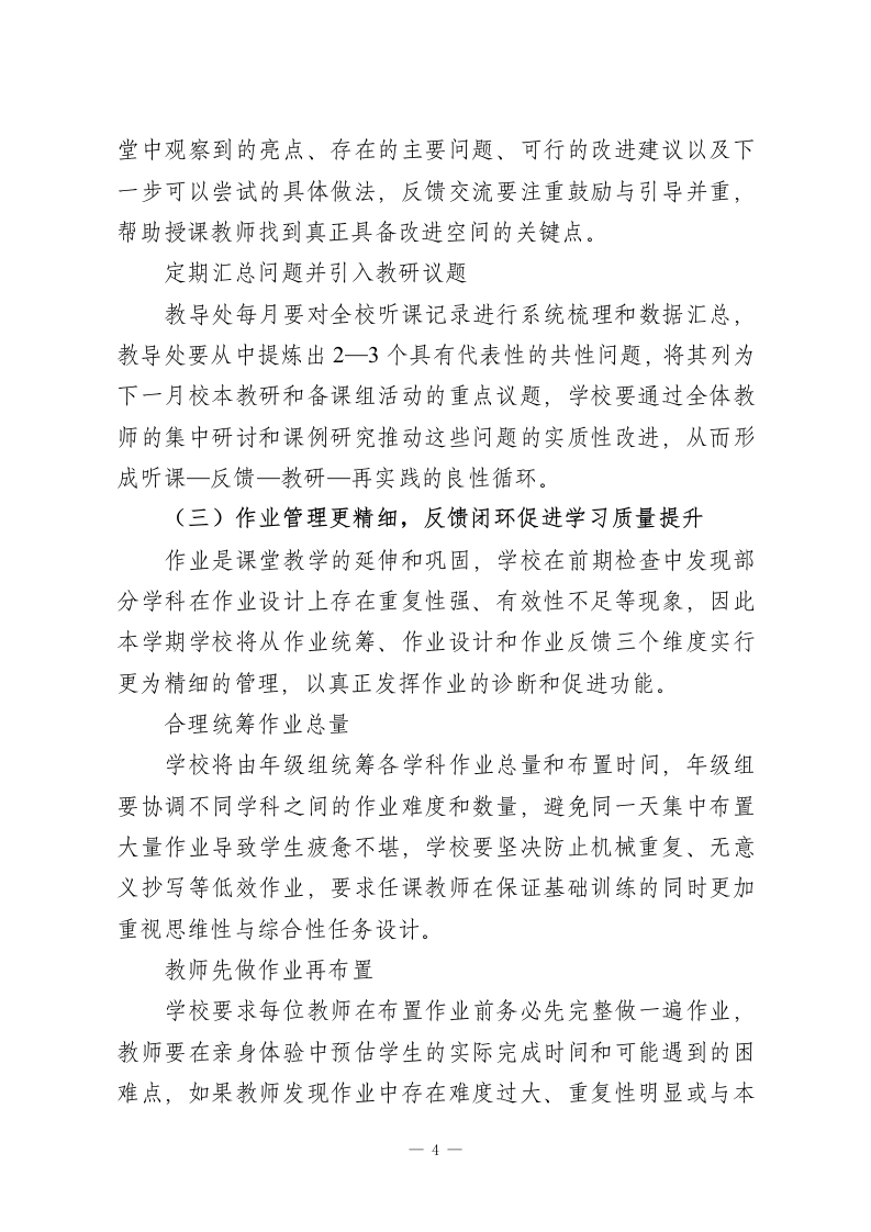 2026年春季学期学校整体工作计划(详细版)背景与概述2025年秋季学期,学校在教学常规、师资队伍建设、家校合作等方面取得了可观进展,但学校在推进过程中也暴露出若干仍需重点破解的薄弱环节,课堂教学质量和教师专业成长依旧构成学校发展的主要瓶颈,作业管理与反馈不够精准及时在一定程度上削弱了教学成效,因此本学期学校要继续把提高课堂教学质量作为工作的核心主线,要把教师教学方法与学生学习效果的有效匹配作为突破口,学校要努力确保每一位教师、每一个班级、每一名学生在教育质量上都真正实现看得见的提升。本学期,学校将继续围绕课堂教学这一主阵地统筹部署整体工作,学校要在贯彻落实各项教育政策的过程中着力提升教师和学生的综合素养,学校要通过强化教师课堂教学能力、丰富教学形式、严格常规管理、深化家校沟通等举措,把学校教育推向一个更加扎实、更加稳健的新高度。一、课堂:教学质量是学校的生命线课堂是学校一切工作的根本载体,作为教育教学的核心环节,本学期学校要把提高课堂教学实效放在首位,学校要聚焦课堂中存在的真实问题精准发力,要集中资源和精力围绕课堂展开一系列具体举措,学校力求让每一节课都尽可能发挥应有的育人功能和教学价值。一1