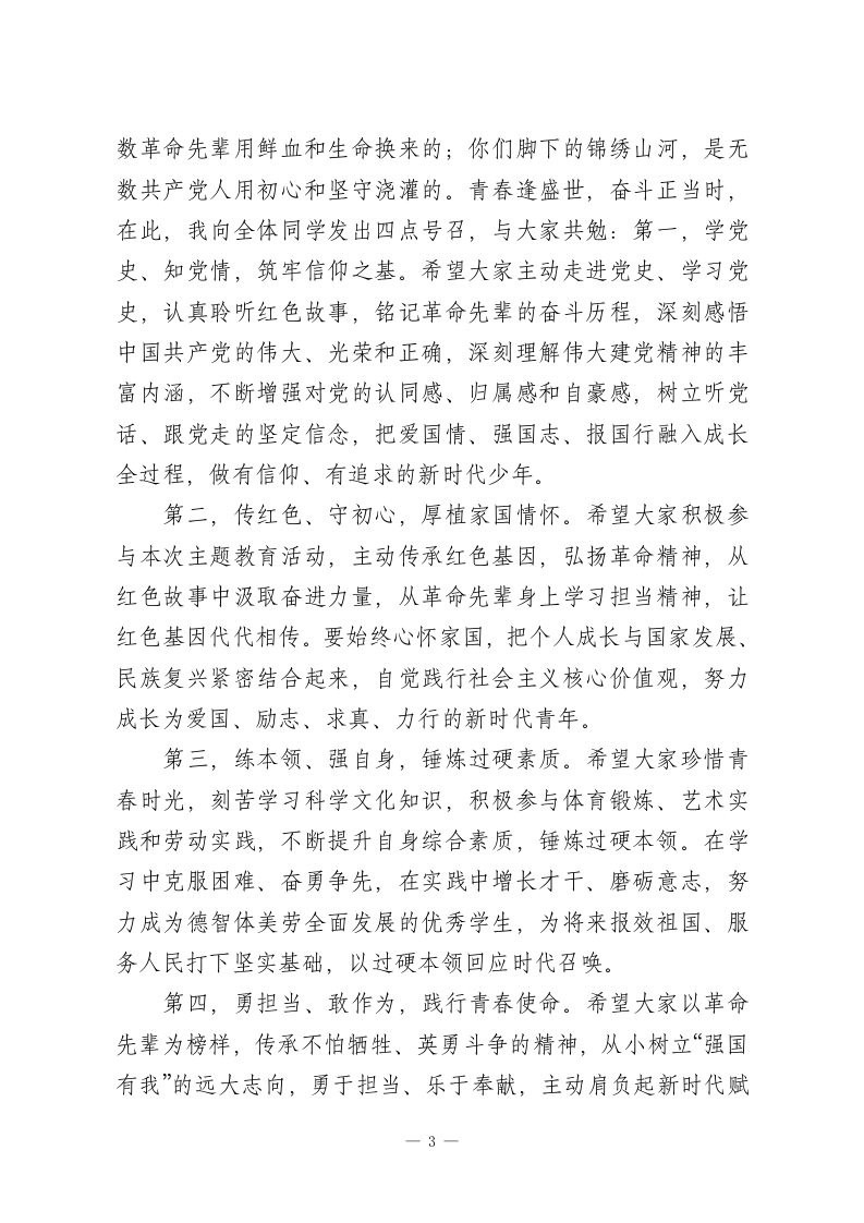 2026年春季学期校长在庆祝建党主题教育活动中的致辞与号召讲话此内容为付费资源,请付费后查看