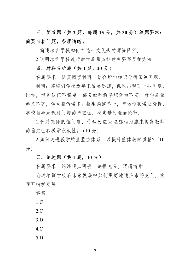 2026年培训学校校长(培训学校管理)试题及答案此内容为付费资源,请付费后查看