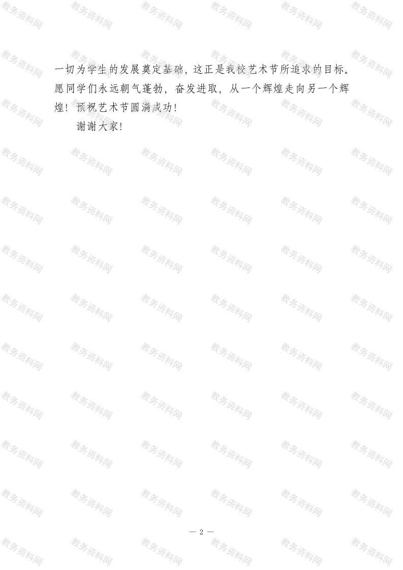 2026年春季学校艺术节校长致辞稿此内容为付费资源,请付费后查看