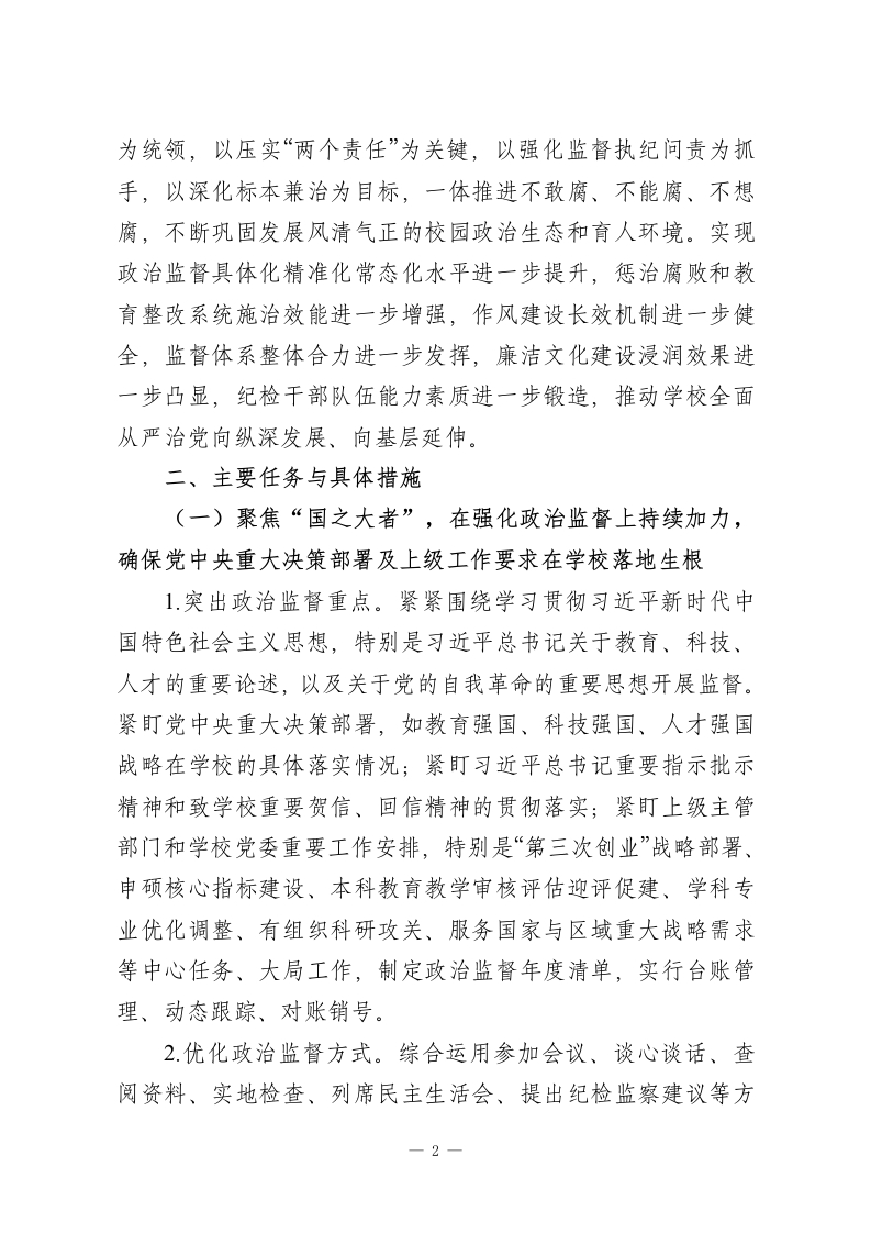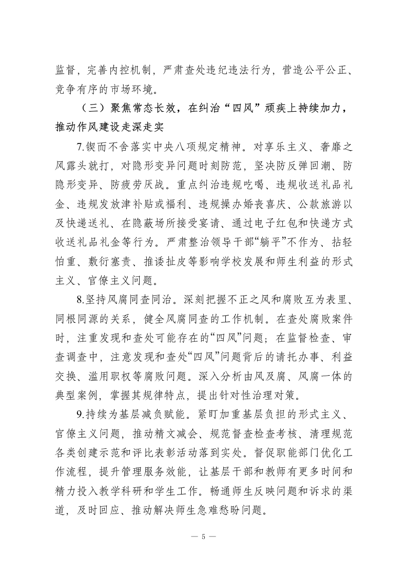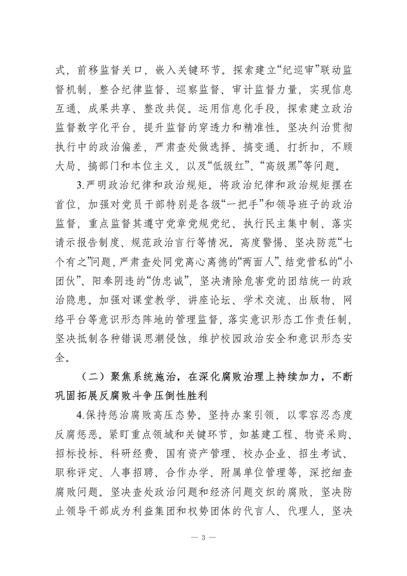 XX学校2026年全面从严治党工作要点(二)为深入贯彻落实党的二十大和二十届二中、三中、四中全会精神,深入学习贯彻习近平总书记关于党的自我革命的重要思想,全面落实二十届中央纪委五次全会部署要求,一刻不停推进全面从严治党,以高质量党建引领保障学校事业高质量发展,结合学校实际,制定本工作要点。一、指导思想与总体要求2026年学校全面从严治党工作的指导思想是:坚持以习近平新时代中国特色社会主义思想为指导,全面贯彻党的二十大和二十届历次全会精神、二十届中央纪委五次全会精神,深刻领悟“两个确立”的决定性意义,增强“四个意识”、坚定“四个自信”、做到“两个维护”,自觉将习近平总书记关于党的自我革命的重要思想,特别是“五个进一步到位”的重要要求,贯彻到学校管党治党、办学治校全过程各方面。牢牢把握新征程反腐败斗争总的要求和战略部署,坚持稳中求进工作总基调,巩固拓展主题教育和教育整顿成果,忠实履行党章和宪法赋予的职责,推动健全全面从严治党体系,持续深化正风肃纪反腐,纵深推进新征程纪检监察工作高质量发展,为学校奋力迈向“第三次创业”新征程、全力打赢申硕攻坚、高质量完成本科教育教学审核评估、落实立德树人根本任务提供坚强政治保障、纪律保障和作风保障。总体要求是:坚持更高标准、更实举措,以党的政治建设1
