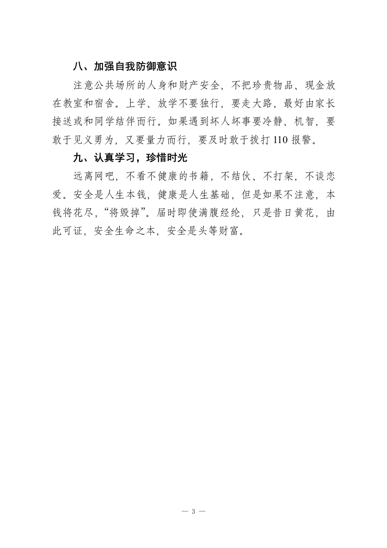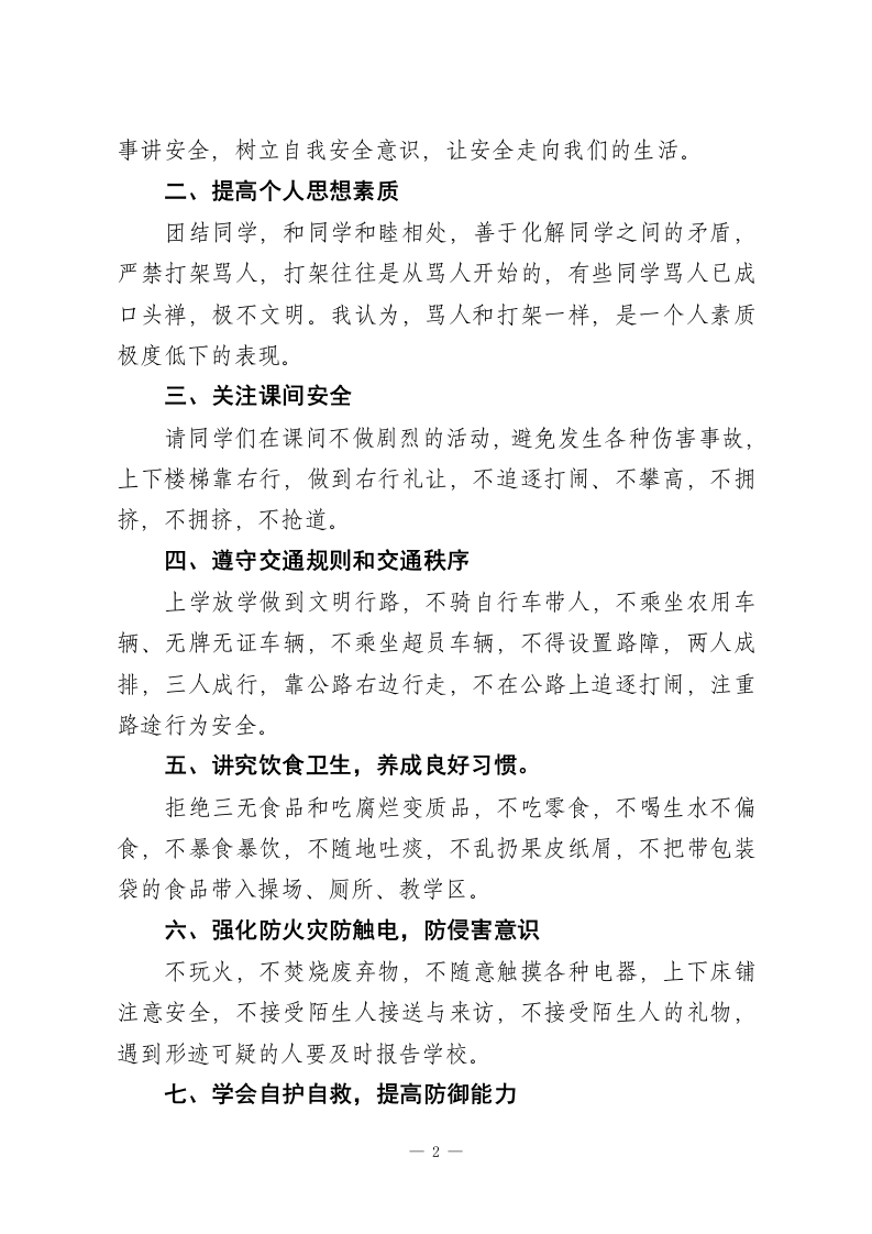 全民国家安全教育日上,校长在国旗下发言,向师生提9个要求老师们、同学们:不知不觉三月已从我们眼前过去,阳春三月是万物复苏的美好季节。我们当中的很多同学一定会记得3月有很多纪念日,3月5日是“向雷锋学习纪念日”,3月8日是国际妇女节,3月12日是我国植树节,3月15日是国际消费者权益日,可今天是什么纪念日,可能大家都不太熟悉,但是对“质量重于泰山,安全高于一切”这句话你们应该耳熟能详,这说明安全与教学是一样重要!今天是“全民国家安全教育日”,又是“全国中小学安全教育日”。安全是学校工作的重中之重,是我们师生幸福安宁的基本保障,是我们各项工作的首要前提,争取做到“我安全、我健康、我快乐”。对于每个人来说,生命都只有一次,注意安全就是善待和珍惜生命的一种有效途径,而在现实生活中,并非人人都具有较高的安全意识。据了解,我国每年约有1.6万名中小学非正常死亡,平均每天有40多人,数字是枯燥的,但它背后是一个个鲜活的生命,这些都说明校园并不是一块安全净土,校园安全形势依然严峻,但有关专家认为通过教育和预防,80%的中小学生意外伤害事故是可以避免的,特向同学们提出以下几点要求一、树立自我安全意识我们要有高度的安全意识、文明意识,要时时想安全,事一1