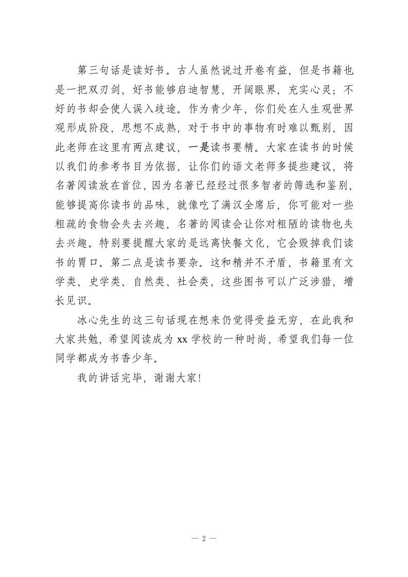 校园读书节开幕式,校长讲话,主要分享3句话此内容为付费资源,请付费后查看
