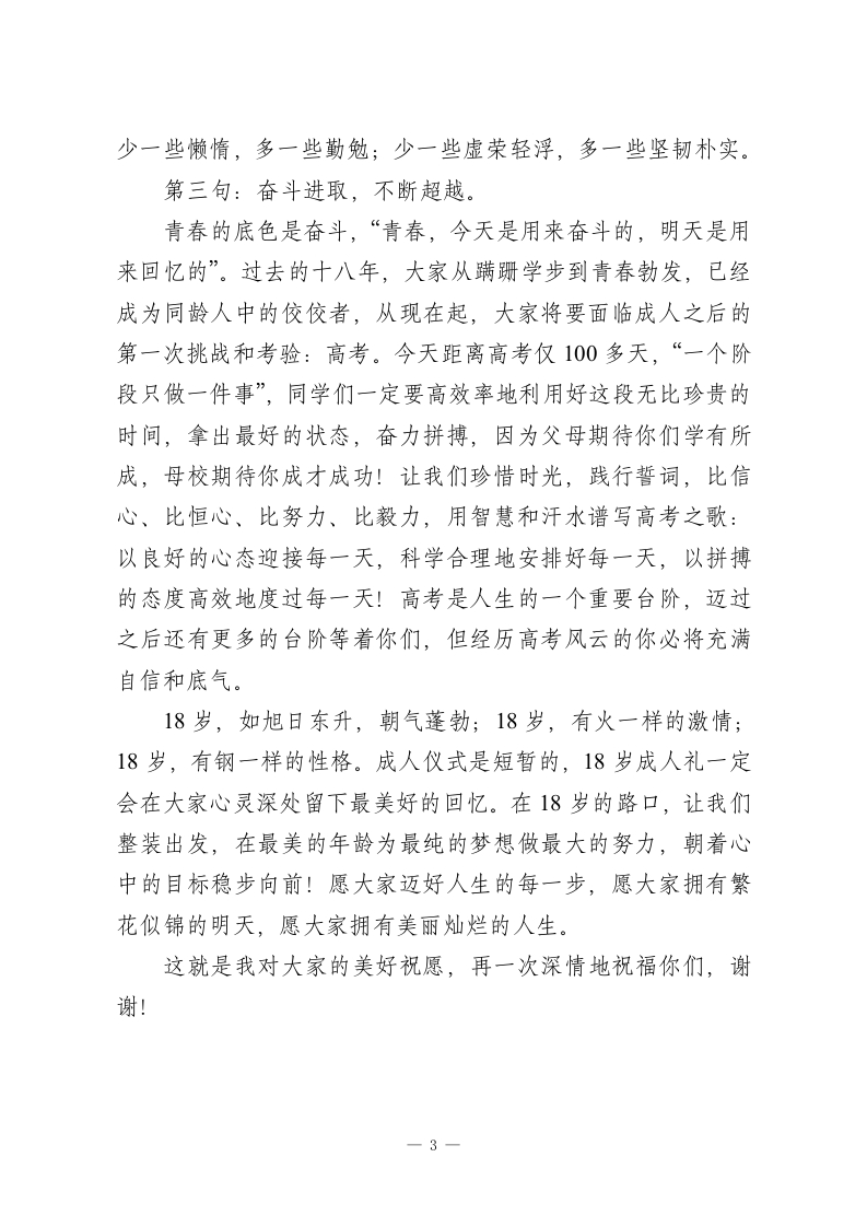 18岁成人礼,校长精彩讲话在18岁的路口,让我们整装出发,在最美的年龄为最纯的梦想做最大的努力,朝着心中的目标稳步向前此内容为付费资源,请付费后查看