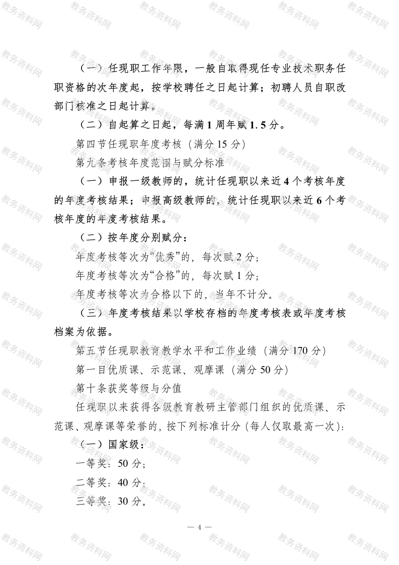 中小学教师中高级专业技术职务任职资格申报推荐量化赋分细则此内容为付费资源,请付费后查看