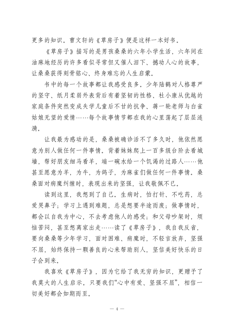 2026年中小学“书香校园”读书节活动征文:最美人间四阅天春风漫卷书香来《小小书虫的成长之路》“书是人类进步的阶梯”,这是俄国著名作家高尔基的一句名言。在我眼中,书籍不仅仅是知识的宝库,更是一处让我沉浸其中、忘却世间烦恼的港湾,是一位能够与我分享快乐、分担忧愁的挚友。自幼,我便对书籍产生了浓厚的兴趣。听妈妈回忆,我还在两岁时就能背诵《唐诗三百首》中的许多诗篇。到了三岁,每天临睡前,我都会缠着妈妈给我讲一个故事,否则就不肯入睡。当我学会了识字,妈妈便为我购置了许多带拼音的图书,让我在阅读中更好地理解内容。如今,我的书架上已经摆满了各类书籍,从作文书、童话故事到小说,种类繁多,琳琅满目。去年,我对读书的热情达到了巅峰。那时,我甚至会在数学课上偷偷阅读。有一天晚上,我正沉浸在书中的世界,突然,妈妈的声音从外面传来:“别看了,快睡觉,已经九点了!快点快点。”在那一秒的时间里,我赶紧一目十行、囫囵吞枣地多看了几行,然后上床睡觉。然而,躺在床上,我仍然对书中的内容念念不忘。于是,我心血来潮,拿起一本书和一盏灯,躲在被子里继续阅读。你猜怎么着?我被前来检查的妈妈抓了个正着。书被妈妈没收了,我只好带着对下面故事的无限遐想,含泪入睡。我的读书经历丰富多彩,而读书也确实给我带来了诸多益-1