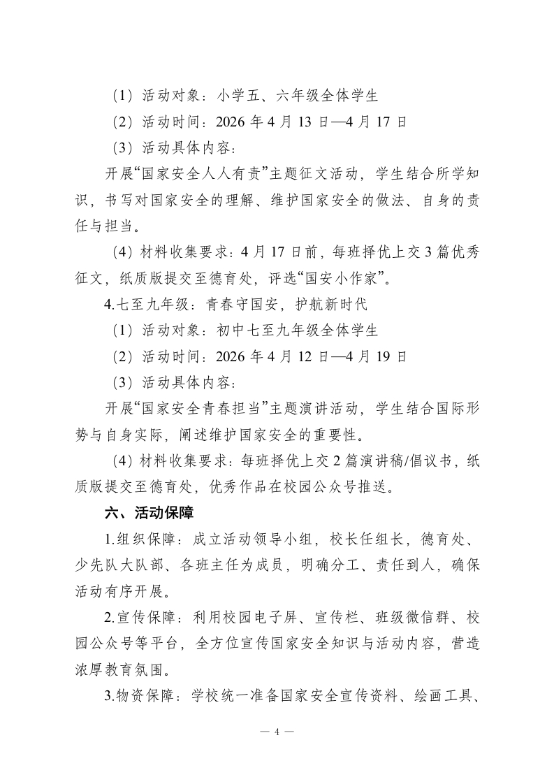 2026年中小学全民国家安全教育日活动方案:国安护万家,少年筑防线此内容为付费资源,请付费后查看