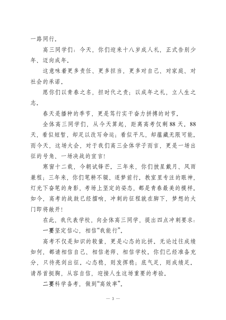 在2026年春季开学典礼暨高三迎高考88天誓师动员大会、高三成人礼仪式上校长讲话:青春由磨砺而出彩,人生因奋斗而升华此内容为付费资源,请付费后查看