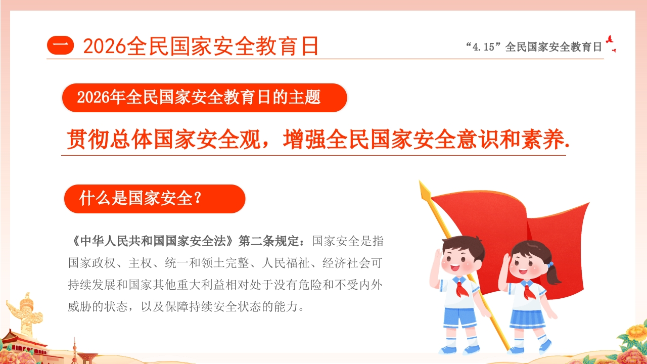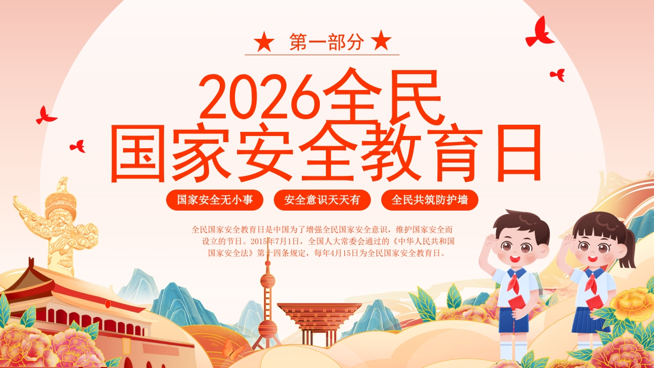 【中小学】【爱国安全教育】主题班会:全民国家安全教育日tangqi884小时前发布关注私信13.68MB22页03715 第1页 / 共22页 第2页 / 共22页 第3页 / 共22页 第4页 / 共22页 第5页 / 共22页 试读已结束,还剩17页,您可下载完整版后进行离线阅读 【中小学】【爱国安全教育】主题班会:全民国家安全教育日此内容为付费资源,请付费后查看¥9.9¥19.9VIP会员免费立即购买您当前未登录!建议登陆后购买,可保存购买订单付费资源© 版权声明本站是一个信息分享及获取的平台,不确保部分用户上传资料的来源及知识产权归属,资料由老师投稿,公开渠道整理,网友上传,如果侵犯到您的权益,请联系客服删除THE ENDPPT课件 文本预览 ★“4.15”全民国家安全教育★全民国家人安全教育日西隊安全小N安全志识大大生央筑防事有墙全民国家安全教育日是中国为了增强全民国家安全意识,维护国家安全而设立的节日。2015年7月1日,全国人大常委会通过的《中华人民共和国国家安全法》第十四条规定,每年4月15日为全民国家安全教育日。 查看更多 收起部分 喜欢就支持一下吧点赞15 分享QQ空间微博QQ好友海报分享复制链接收藏