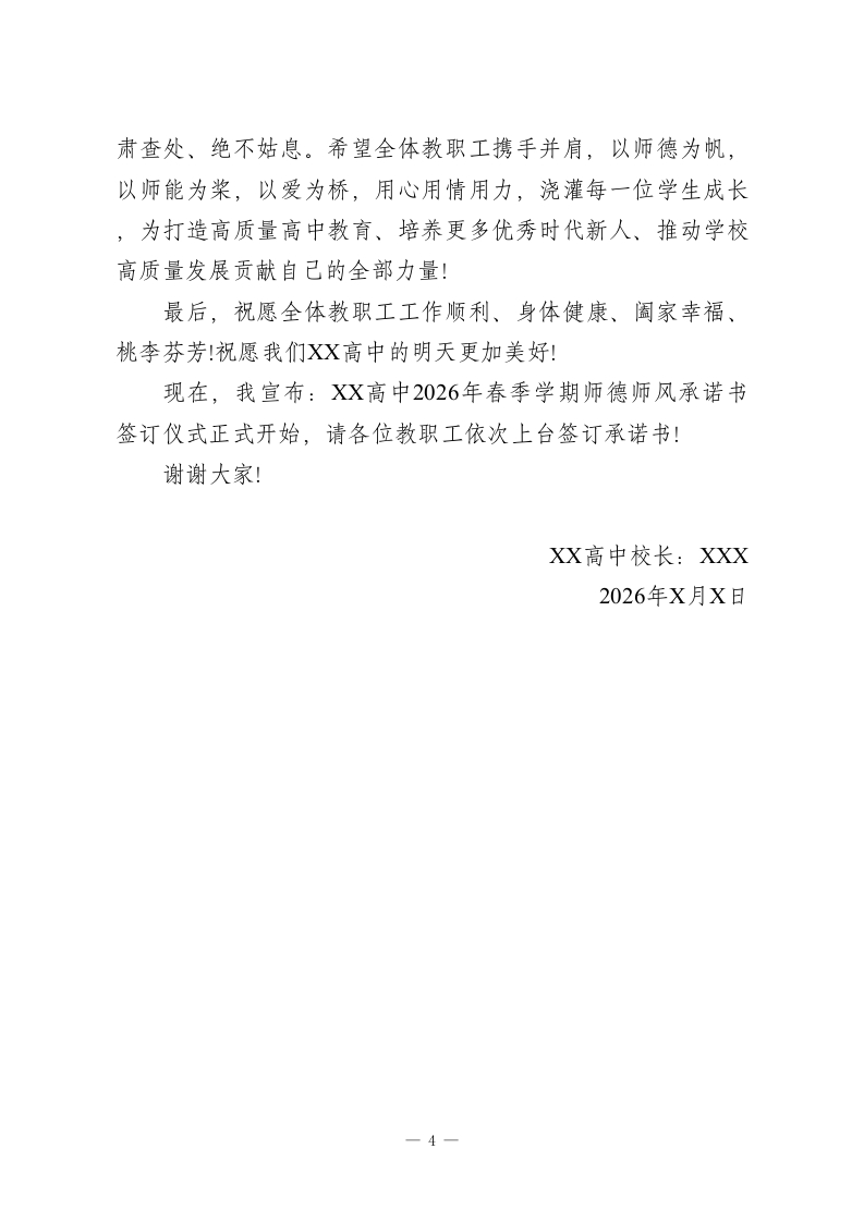 XX高中2026年春季学期师德师风承诺书签订仪式校长讲话此内容为付费资源,请付费后查看