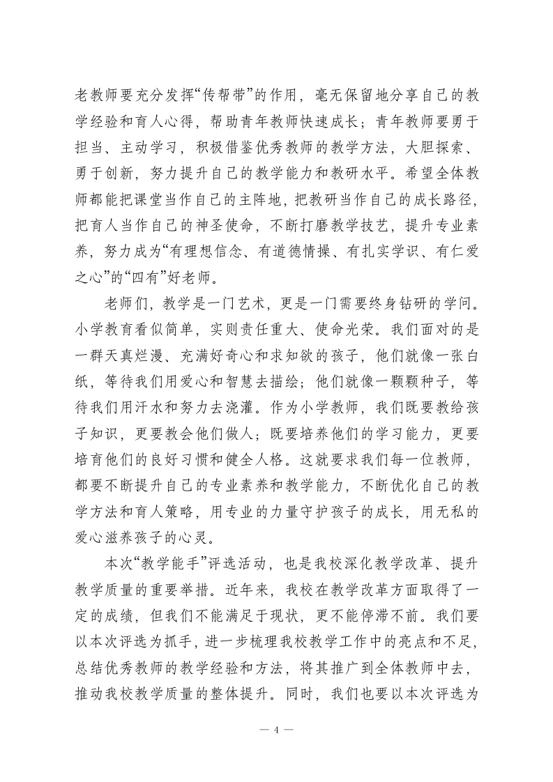 XX小学2026年春季学期“教学能手”评选活动启动会校长致辞此内容为付费资源,请付费后查看