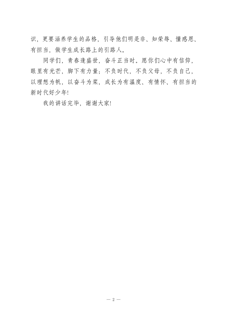 校长思政课主题发言稿:青春励志,理想信念主题(中小学通用)亲爱的老师们、同学们:大家好」今天,我以思政课的形式和大家面对面交流,不谈复杂的理论,只聊成长、责任与理想。思政从来不是课本上枯燥的文字,而是融入我们日常一言一行的人生准则,是照亮前行道路的精神灯塔。同学们,青春最美好的底色,是心怀理想、脚踏实地。少年自有凌云志,不负韶华行且知。或许现在的你们,会觉得学习辛苦、成长有压力,会迷茫未来该去往何方。但请记住:所有优秀的背后,都是日复一日的坚持;所有梦想的实现,都是一点一滴的积累。课堂上认真听讲,是对成长的负责;遵守校规礼貌待人,是品格的修养;懂得感恩体谅他人,是内心的善良。这些小事,就是最朴素的思政修行。我们生在盛世,长在红旗下,享受着安稳幸福的生活。这份岁月静好,从来不是理所当然,是无数先辈披荆斩棘、无私奉献换来的。回望历史,一代代青年以家国为己任,用热血守护山河,用奋斗书写担当。如今,时代的接力棒交到了你们手中。作为新时代青少年,爱国从来不是一句口号:认真学好知识,练就过硬本领,是爱国;坚守道德底线,正直做人做事,是爱国;热爱集体、维护学校荣誉,也是爱国。老师们,立德树人是教育的根本使命。我们不仅要传授知1