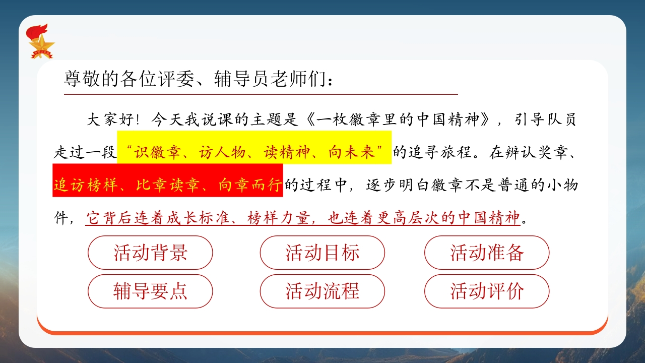 少先队辅导员技能大赛说课——一枚徽章里中国精神tangqi889小时前发布关注私信0.15GB29页02010 第1页 / 共29页 第2页 / 共29页 第3页 / 共29页 第4页 / 共29页 第5页 / 共29页 试读已结束,还剩24页,您可下载完整版后进行离线阅读 少先队辅导员技能大赛说课——一枚徽章里中国精神此内容为付费资源,请付费后查看¥9.9¥19.9VIP会员免费立即购买您当前未登录!建议登陆后购买,可保存购买订单付费资源© 版权声明本站是一个信息分享及获取的平台,不确保部分用户上传资料的来源及知识产权归属,资料由老师投稿,公开渠道整理,网友上传,如果侵犯到您的权益,请联系客服删除THE ENDPPT课件 文本预览 中精神枚徽章里的★★★★★说课人:X老师时间:2026年04月 查看更多 收起部分 喜欢就支持一下吧点赞10 分享QQ空间微博QQ好友海报分享复制链接收藏