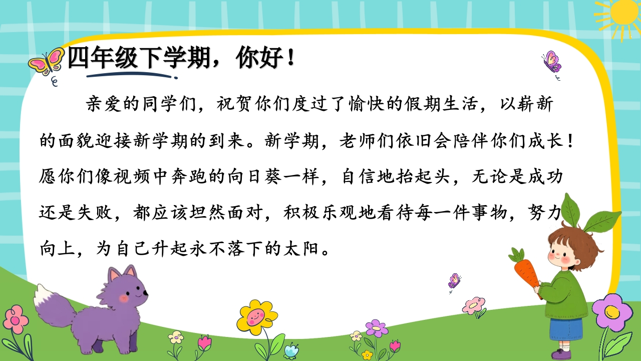 【四年级】【语文】开学第一课:四年级拍了拍你tangqi8813小时前发布关注私信0.17GB56页0366 第1页 / 共56页 第2页 / 共56页 第3页 / 共56页 第4页 / 共56页 第5页 / 共56页 试读已结束,还剩51页,您可下载完整版后进行离线阅读 【四年级】【语文】开学第一课:四年级拍了拍你此内容为付费资源,请付费后查看¥9.9¥19.9VIP会员免费立即购买您当前未登录!建议登陆后购买,可保存购买订单付费资源© 版权声明本站是一个信息分享及获取的平台,不确保部分用户上传资料的来源及知识产权归属,资料由老师投稿,公开渠道整理,网友上传,如果侵犯到您的权益,请联系客服删除THE ENDPPT课件 文本预览 四年级语文下册开学第一课四年级下拍了拍你X老师 查看更多 收起部分 喜欢就支持一下吧点赞6 分享QQ空间微博QQ好友海报分享复制链接收藏
